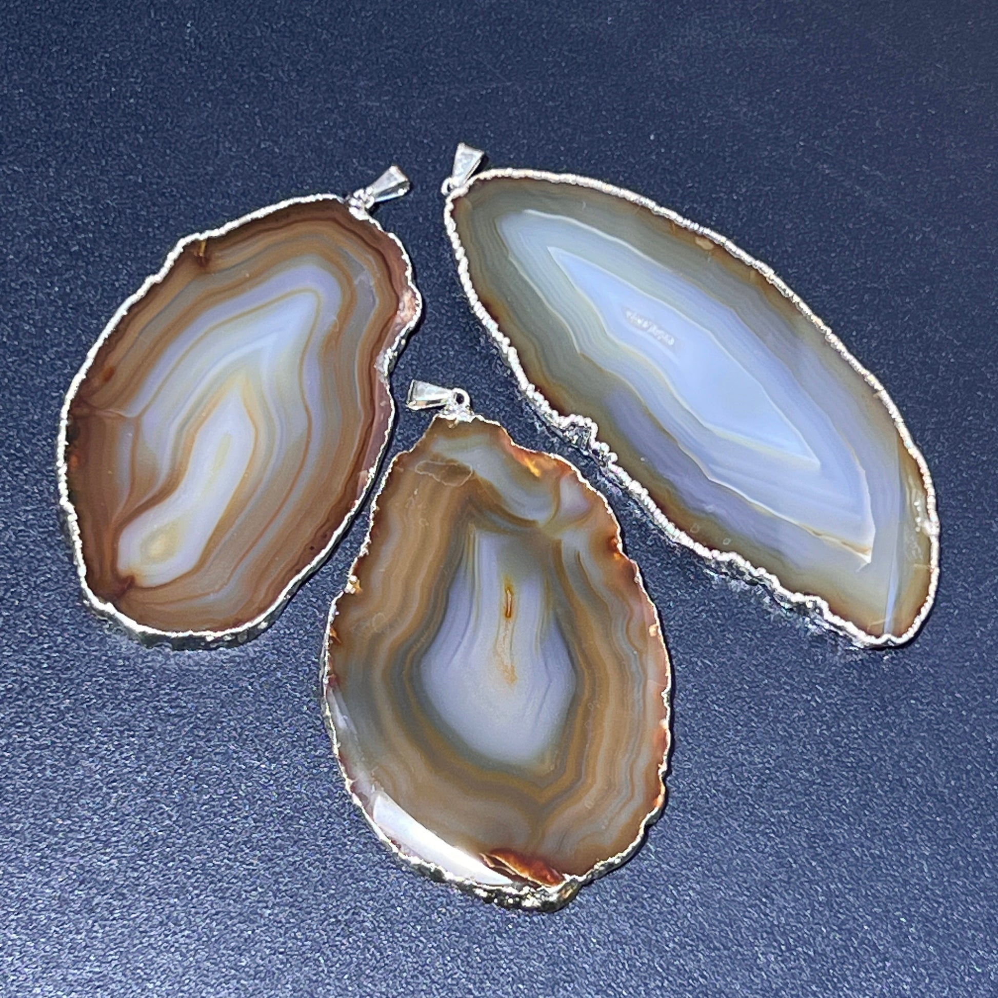 Agate Slice Necklace Pendant (5 Pcs)(Natural Brown)(Silver Edges) Geode Slice Jewelry