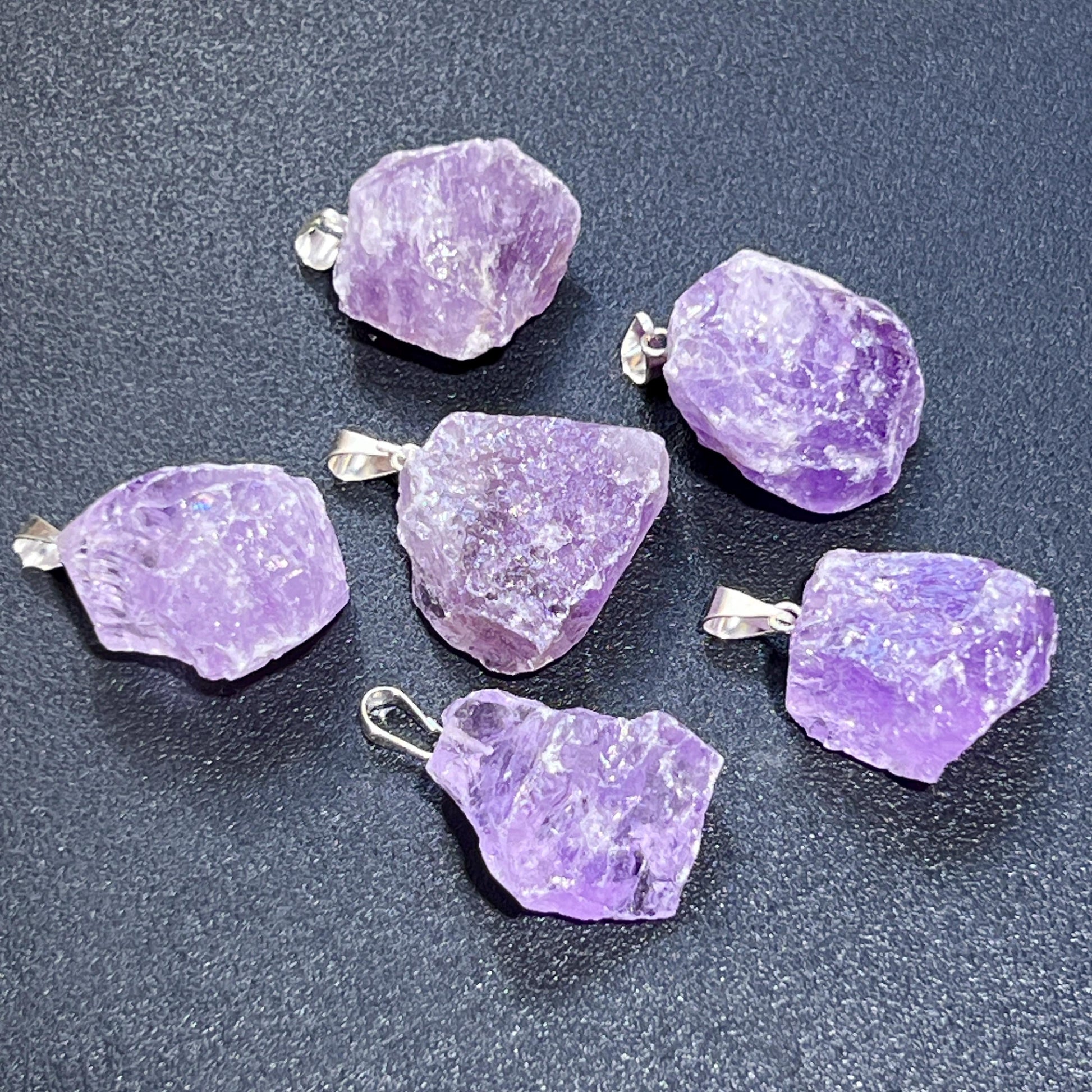 Amethyst Crystal Rough Raw Pendant (Silver Bail) Gemstone Jewelry Necklace Supply