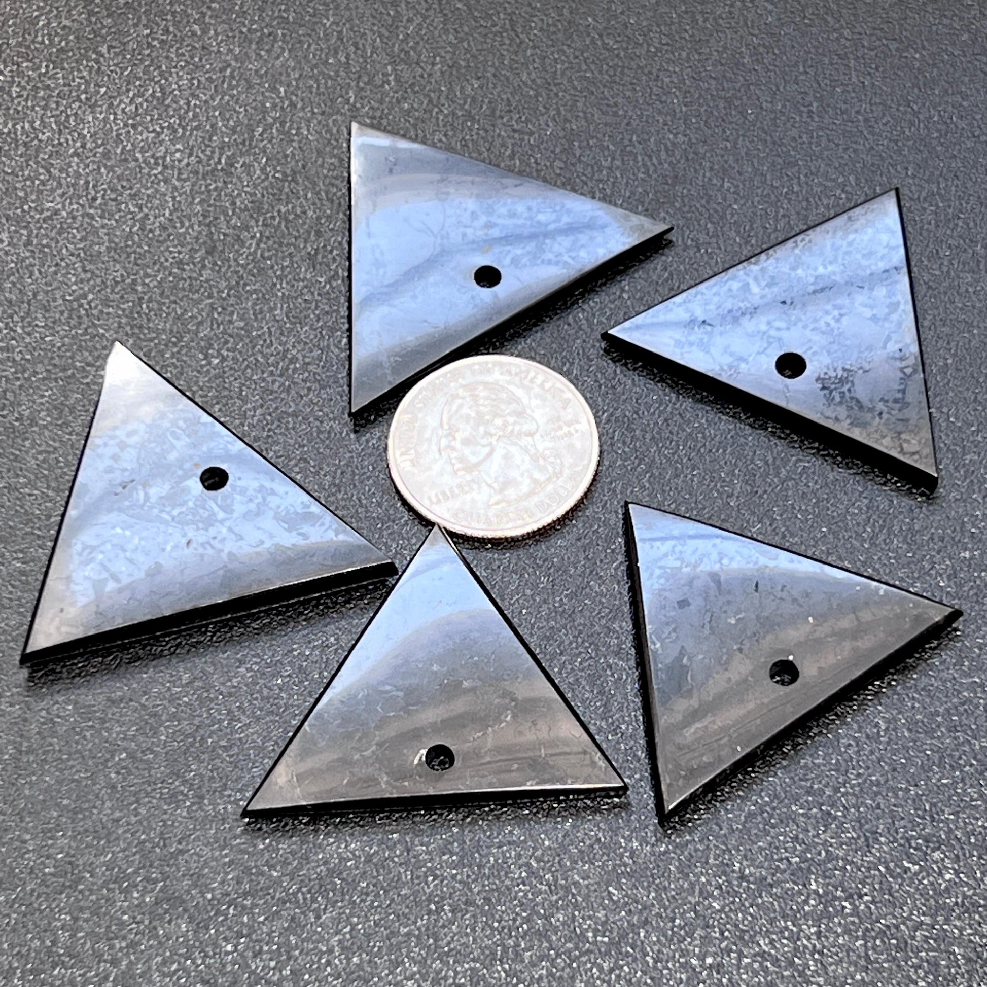 Black Shungite Triangle Drilled Beads Pendant Gemstone Jewelry Necklace Supply