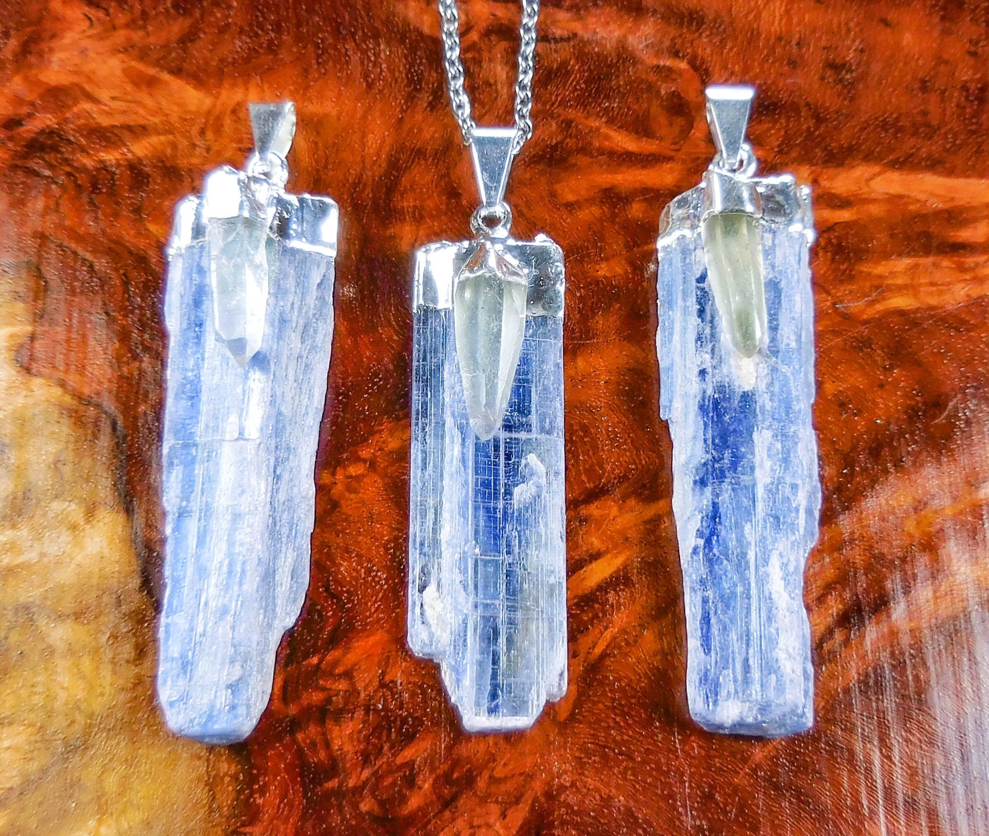 Kyanite and Quartz Crystal Pendant (Silver Plated) Blue Gemstone Jewelry Necklace Supply