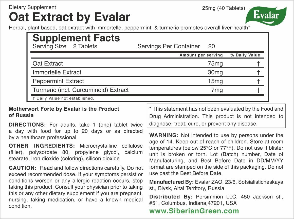 Oat Extract with Herbs by Evalar Ovesol 40 Tabs