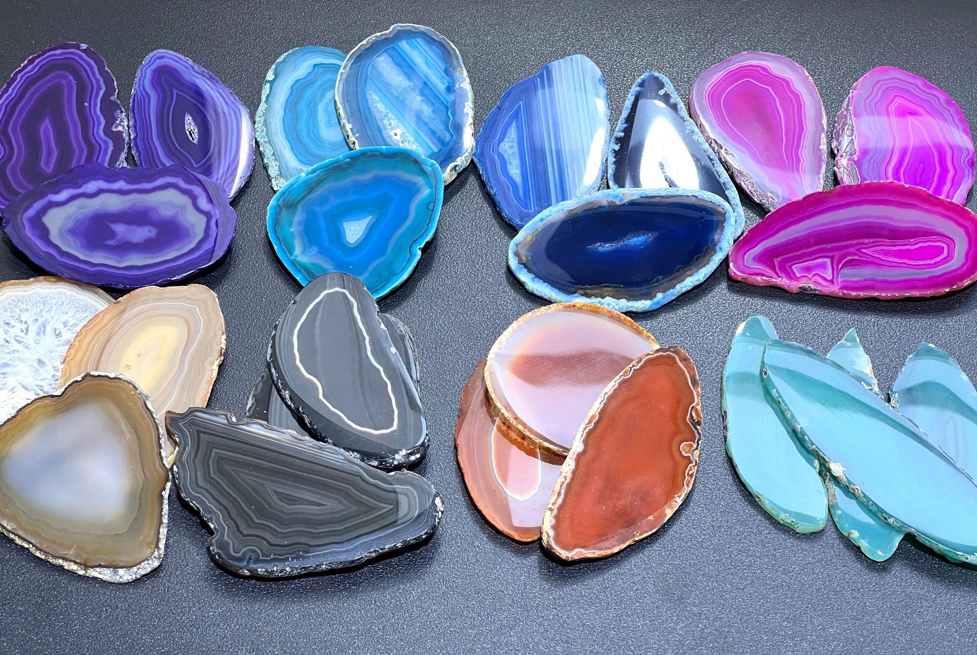 Oval Agate Slices (1 Pound)(2.5-3.5 Inches)(Size #0) One LB Wholesale Polished Pink Black Blue Teal Pink Purple Red Mixed Colors