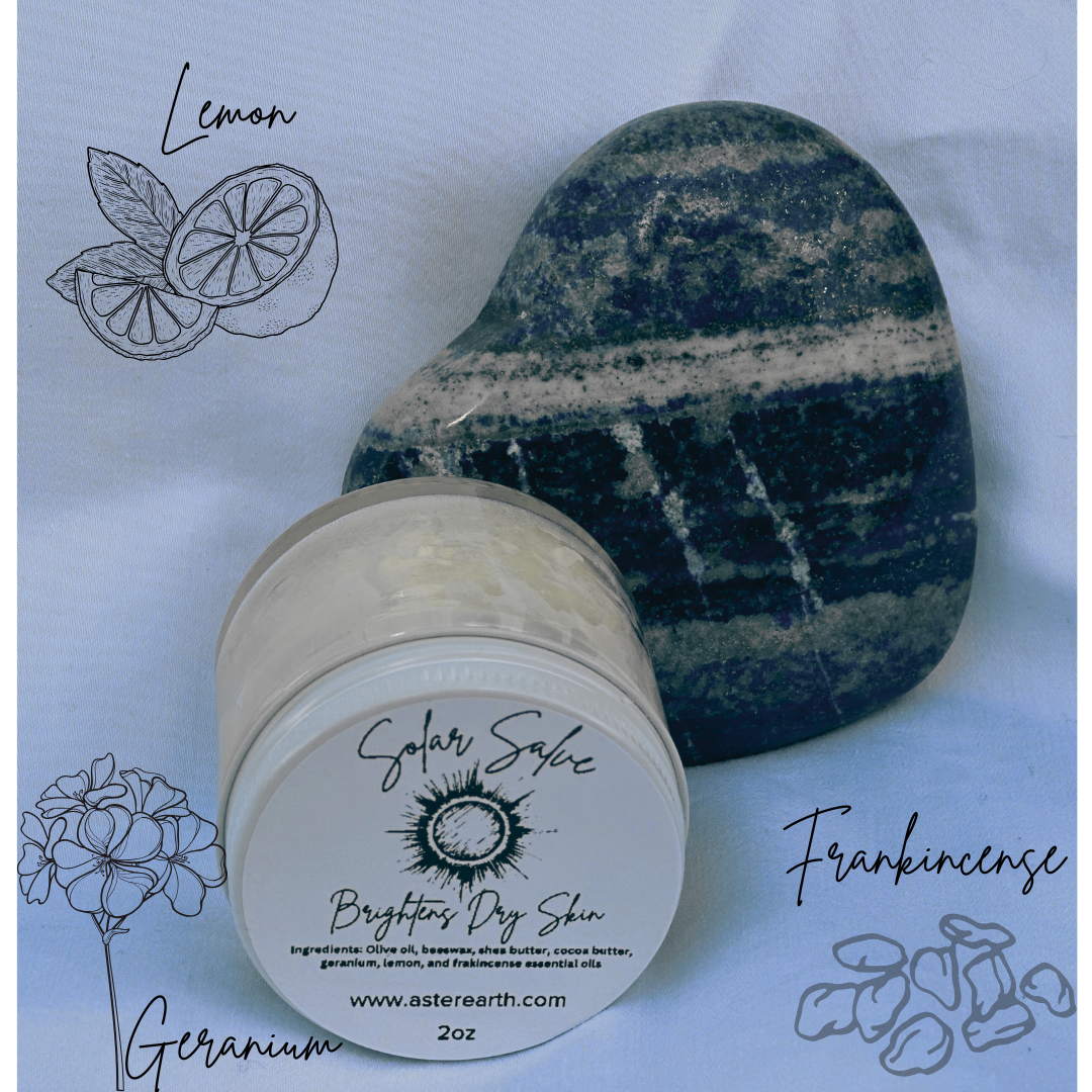 Our Solar Salve is a fusion of locally sourced beeswax, extra virgin olive oil, cocoa butter in the nourishing base.